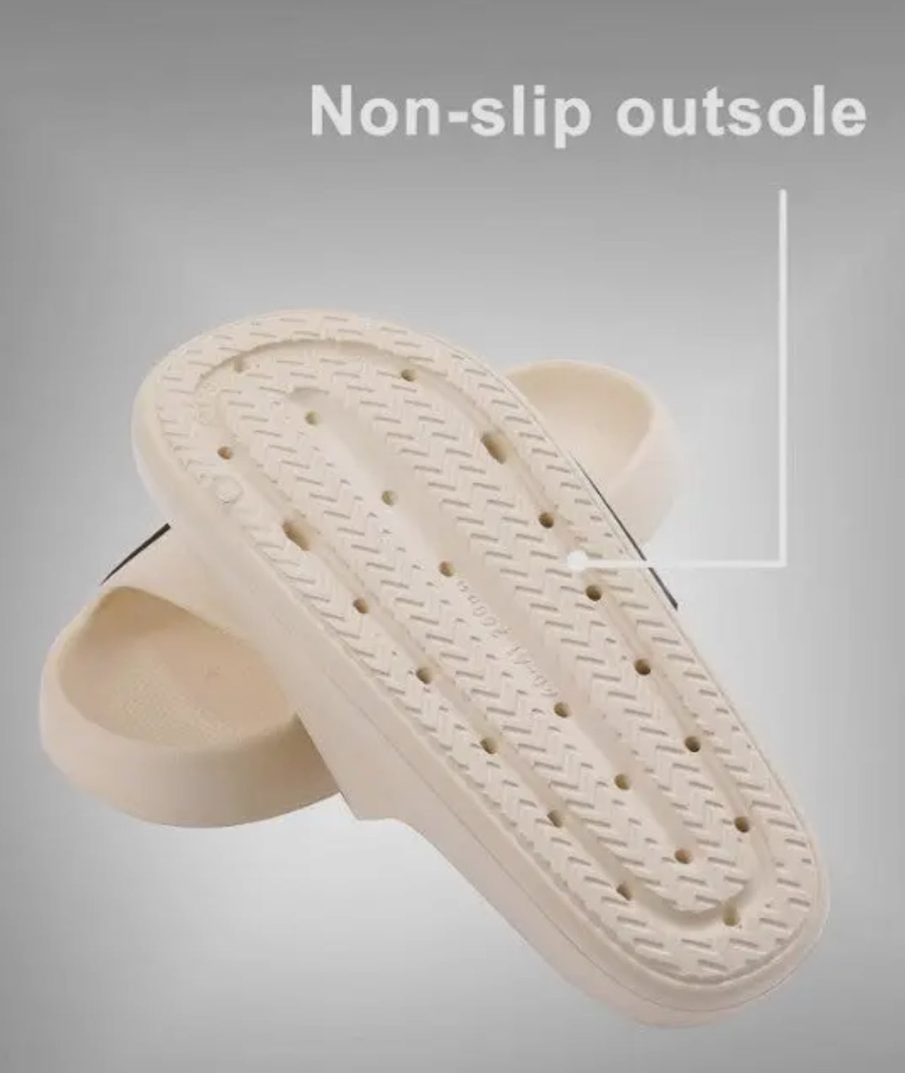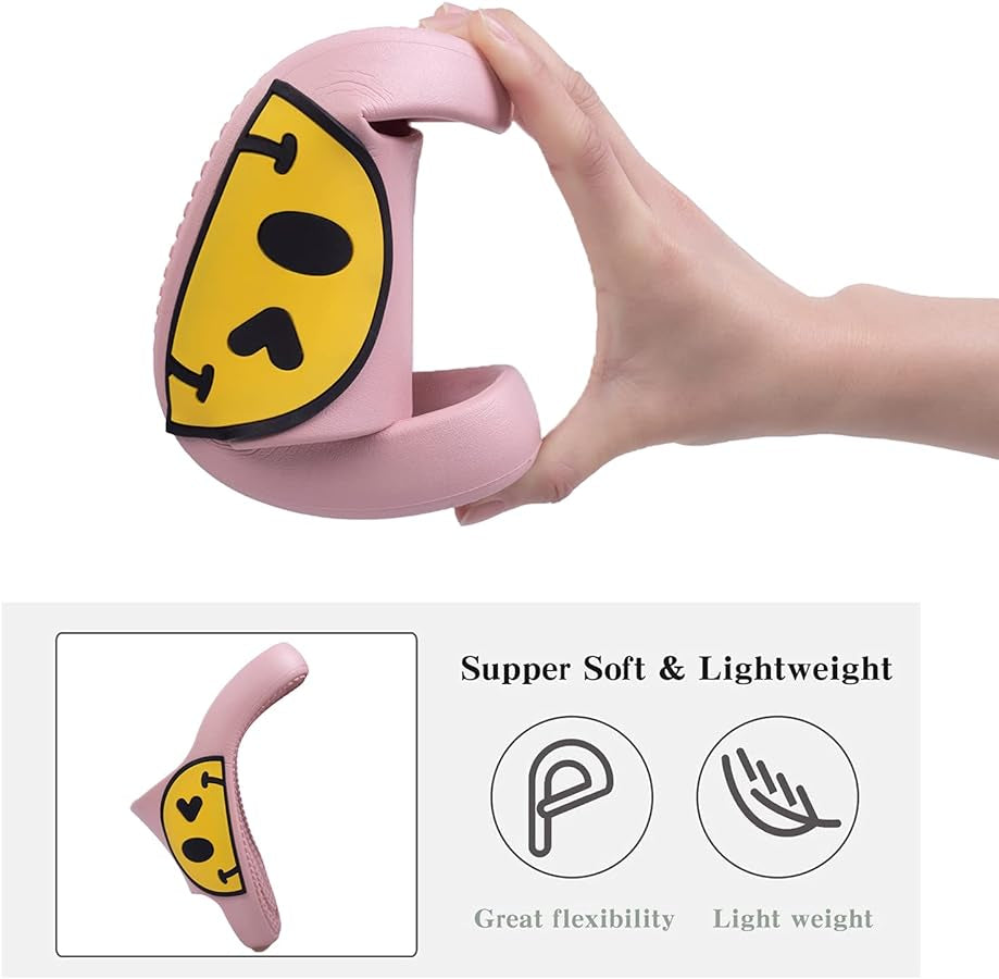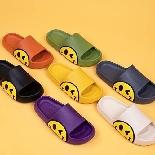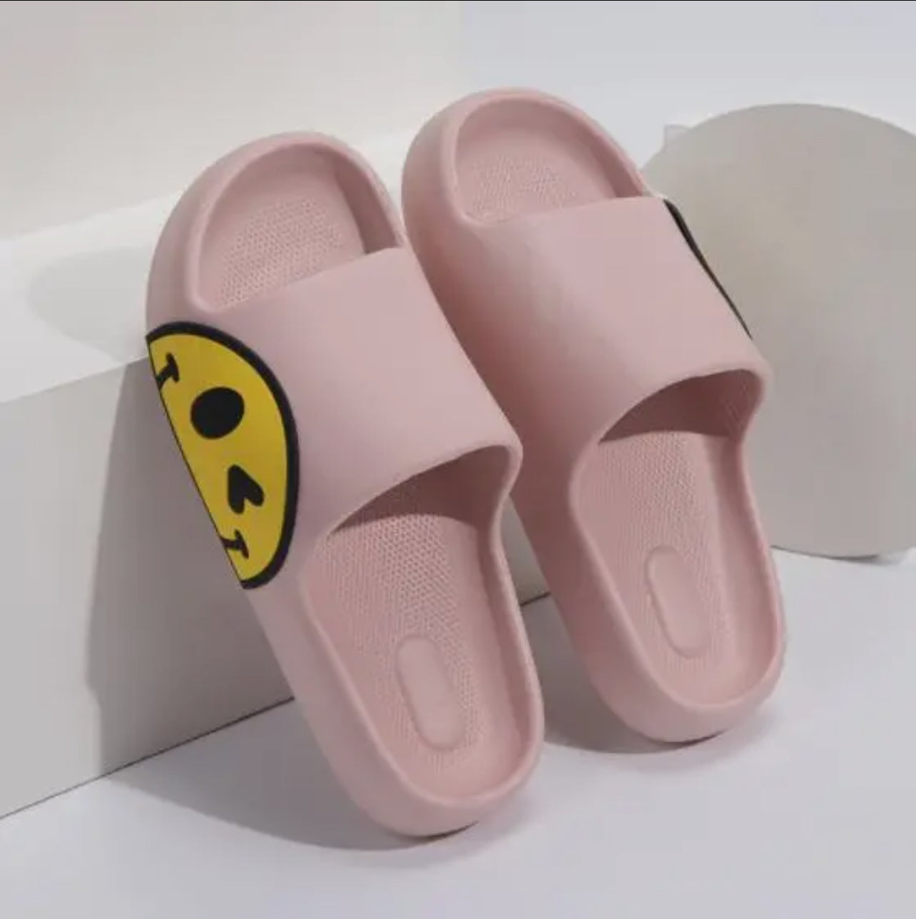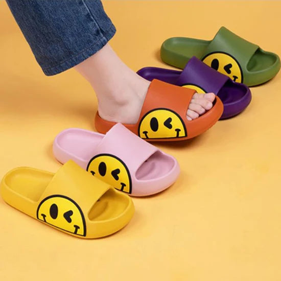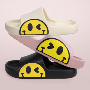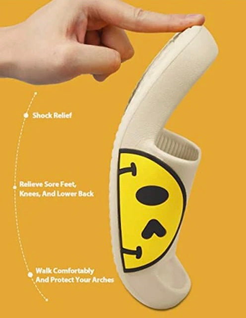 The smiley face slippers are made of lightweight high quality EVA material. Non slip! The sole not only provides good shock absorption but are super soft, light weight, comfortable, and easy to clean.