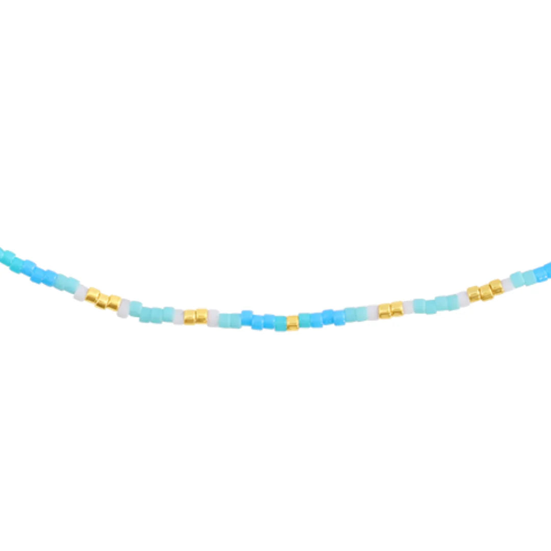- Style: Dainty necklace, colored beads, beaded necklace, surf jewelry, beach vibes.