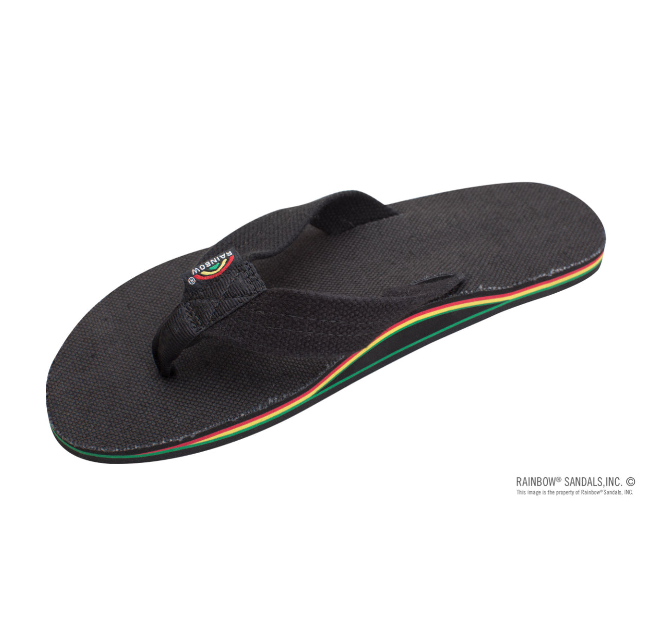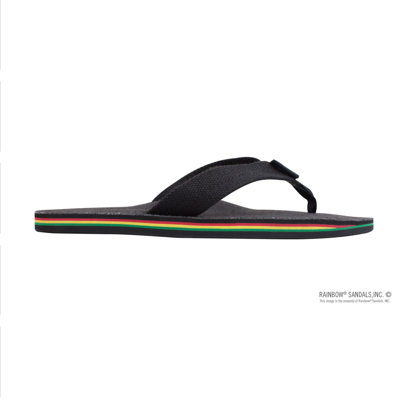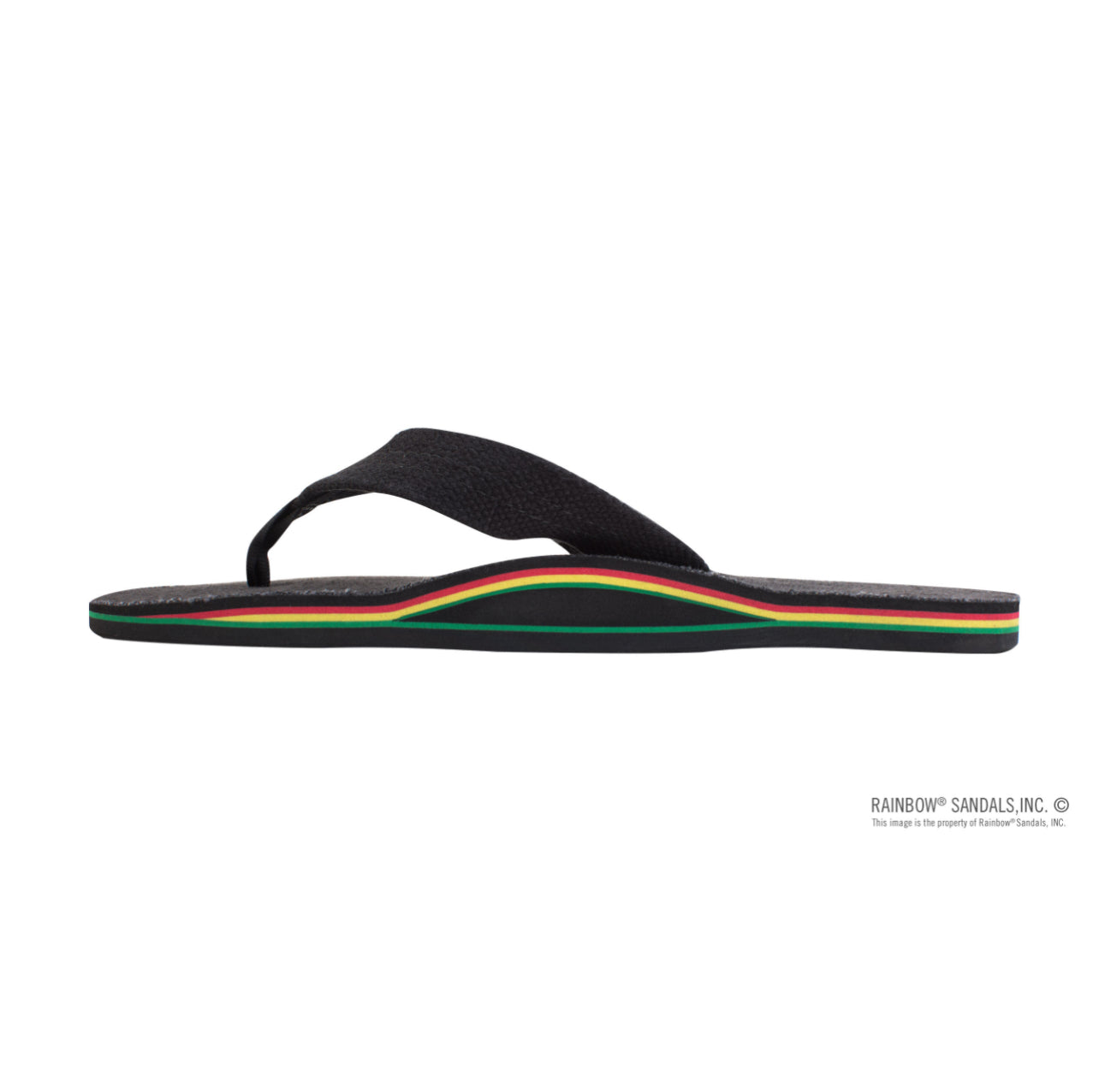 THE RASTAFARIAN - Rainbow Single Layer Black Hemp with Rasta Mid Sole
